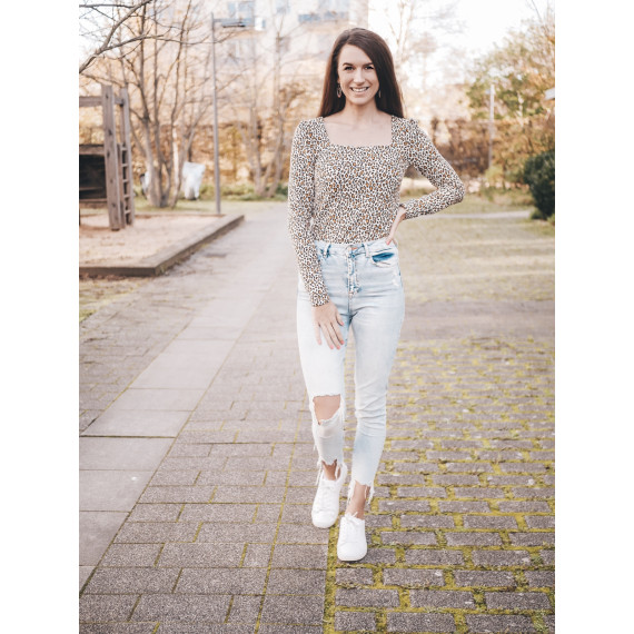 Die Ärmel von CAMILA werden an der oberen Schulter leicht gekräuselt wodurch ein kleiner Puffärmel entsteht, der aber nicht zu sehr aufträgt. Durch die leichten Puffärmel werden die Ausschnitte und deine Schultern toll in Szene gesetzt.