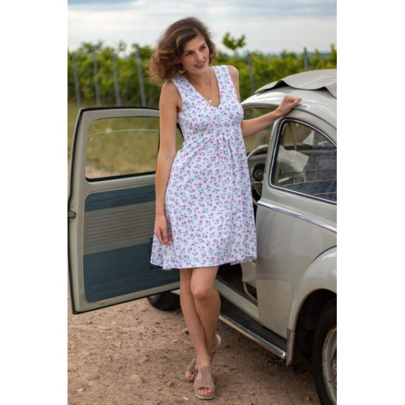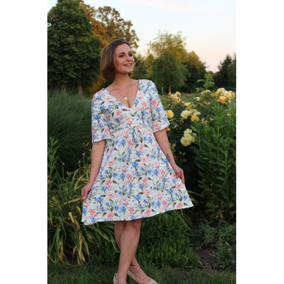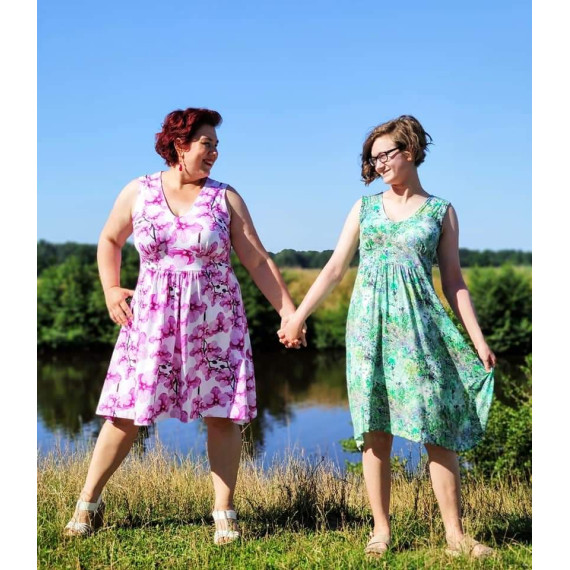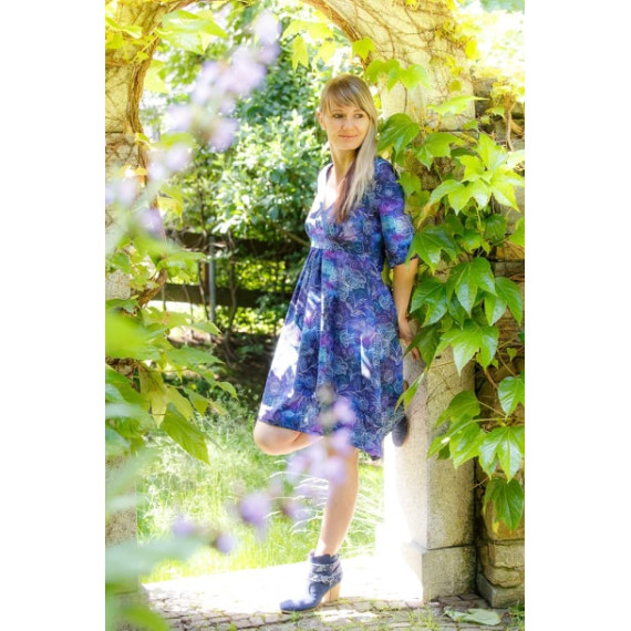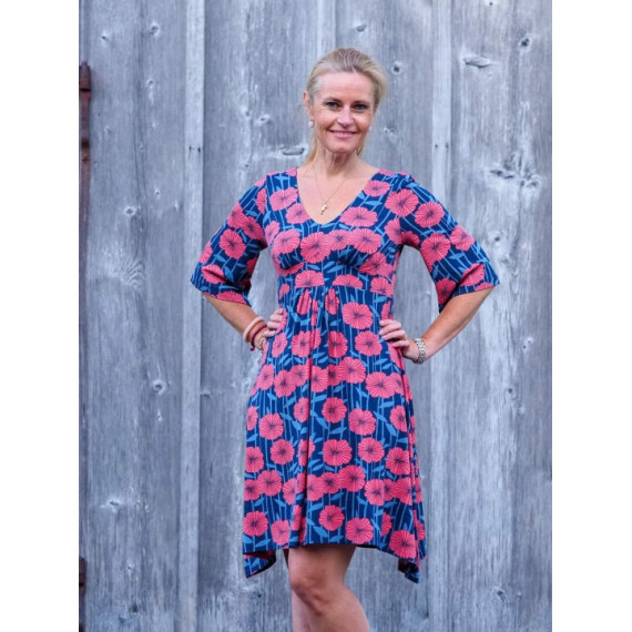 Cleo ist ein feminines Kleid mit raffiniertem Dekolletee im Ibizastil. Du kannst deine Cleo in Tunikalänge, Knielänge oder als Maxikleid nähen.