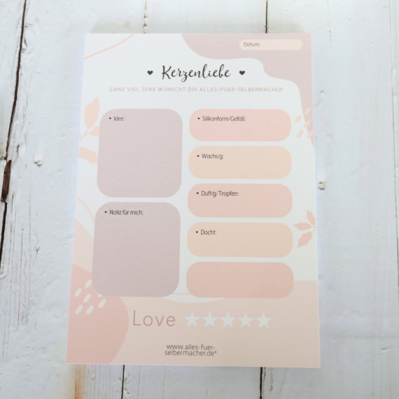 Kerzenliebe - Papierblock - zum sammeln von Ideen und Projekten zum Kerzen Gießen