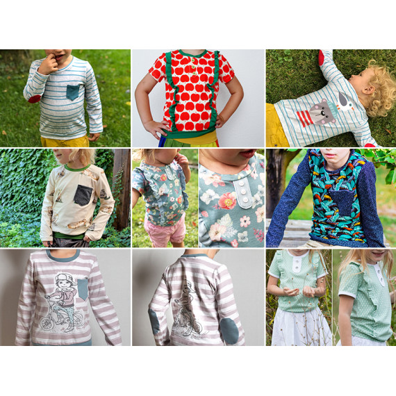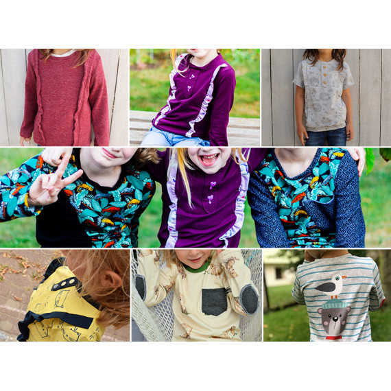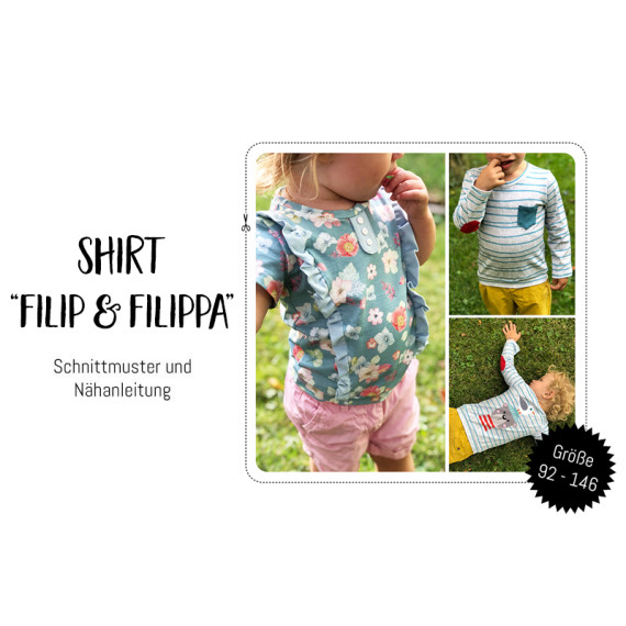 Shirt „Filip & Filippa“ ist ein wandelbarer Basic-Schnitt für T-Shirts oder Longsleeves in zwei Varianten. „Filippa“ hat vorn zwei eingearbeitete Rüschenstreifen und kann mit einer optionalen Knopfleiste verziert werden. “Filip” kommt mit einer aufgesetzten Brusttasche und stylischen Ellenbogen-Patches an den Ärmeln daher. Im Schnittmuster sind die Größen 92 bis 146 enthalten.