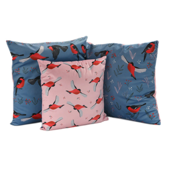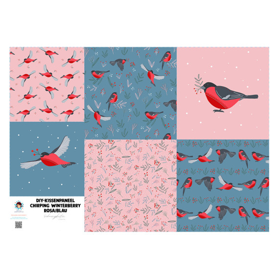 Kissenstoff - DIY - Kissen-Set - Chirping Winterberry - Rosa/Blau - Velvet - Schoenigkeiten Illustration - abby and amy