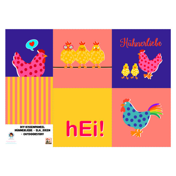 Kissenstoff - DIY - Kissen-Set - Hühnerliebe - hEi - ela ideen - Outdoorstoff - abby and amy