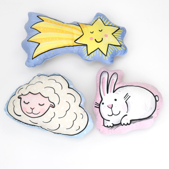 In diesem Set sind ein Hase, Schaf und eine Sternschnuppe dabei.