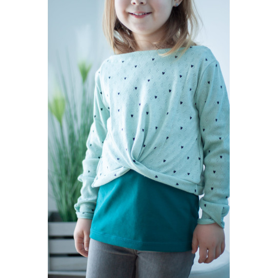 Nun kann auch dein Kind das vielseitige Knotenshirt „Thea“ tragen. Mit den schönen Knotenhighlights am Vorder- oder Rückteil und den Ärmeln zauberst du im Handumdrehen das perfekte Kleidungsstück für jeden Anlass und jedes Wetter.