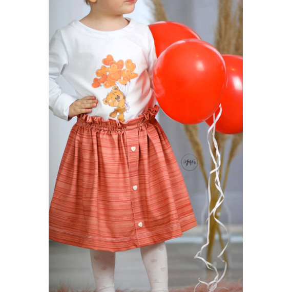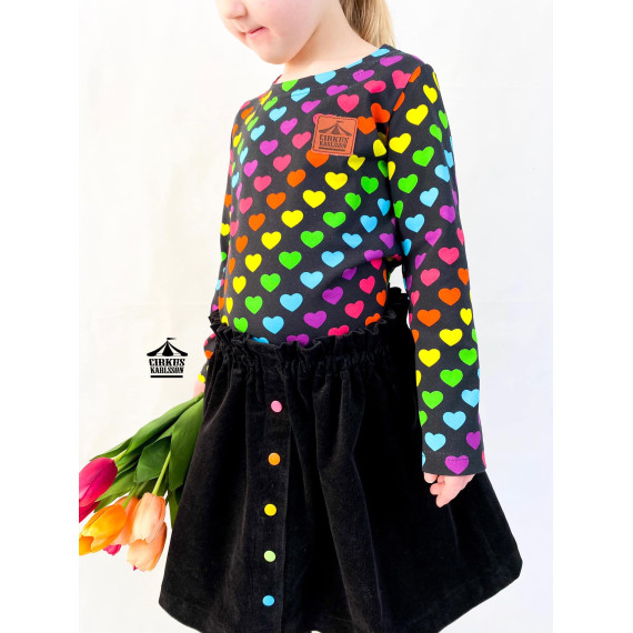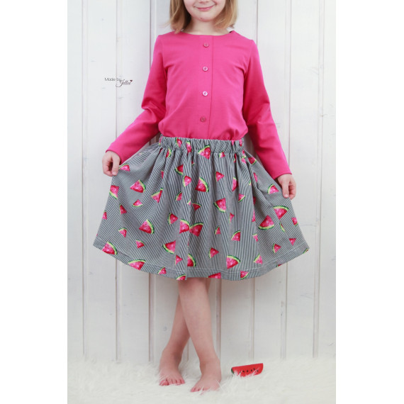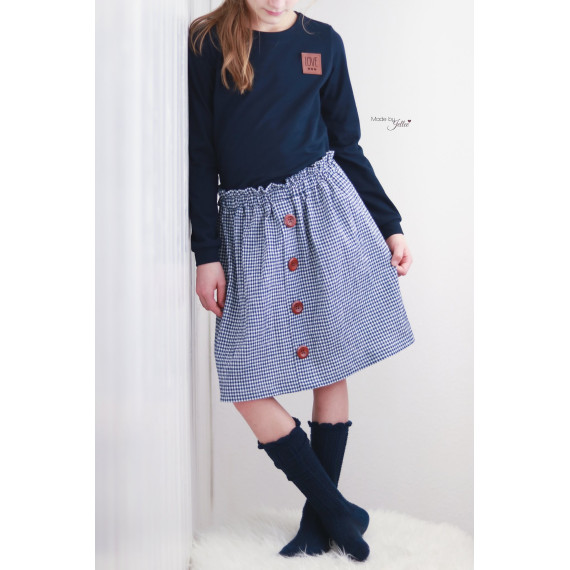 Der Button Skirt ist ein geraffter Rock der wunderbar im Sommer getragen werden kann. Mit Strumpfhose oder Leggings kann er natürlich auch das ganze Jahr getragen werden und ist die perfekte Ergänzung zum Button Shirt!