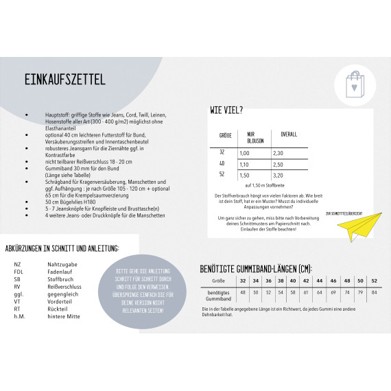 Das Schnittmuster kommt in den Damengrößen 32–52.