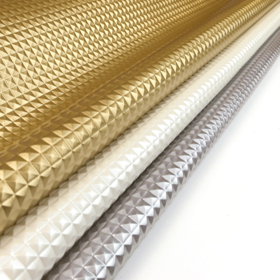 Kunstleder mit Struktur - Merlin - Nieten Optik - 3D - Glänzend - Gold
