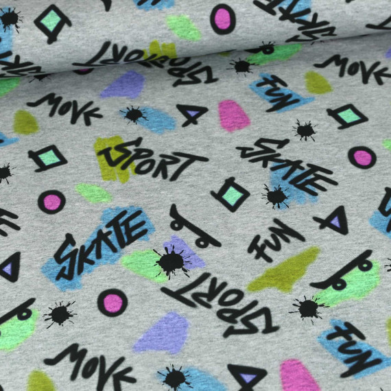 Leichter Kuschelsweat - Graffiti Style - Hellgrau Meliert