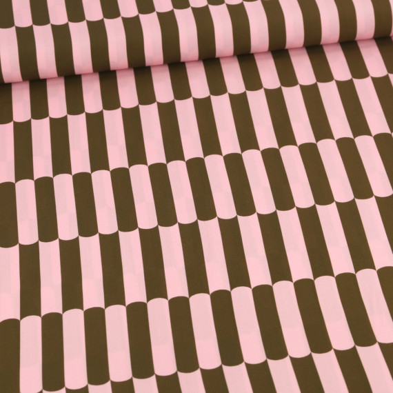 Lenzing Ecovero - Blusenstoff - Short Stripes - Olivgrün Dunkel/Blassrosa