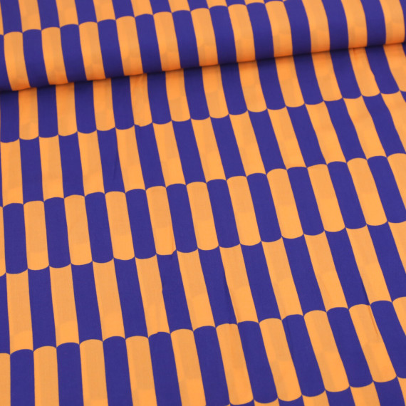 Lenzing Ecovero - Blusenstoff - Short Stripes - Royalblau/Apricot Hell