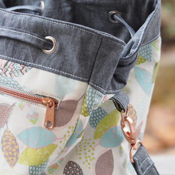 Die Matchbag ist eine lässige Tasche für unterwegs. Der Verschluss mit Ösen und Kordel ermöglicht einen großen und komfortablen Tascheneingriff. Auf Wunsch kannst du zusätzlich einen kleinen Überschlagdeckel anbringen und eine Reißverschlusstasche einnähen. Im E-Book sind zwei verschiedene Gurtvarianten enthalten, um die Matchbag entweder als Schultertasche oder als Rucksack zu nähen.
