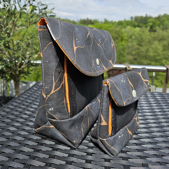 Als Material gehen z. B. Canvas, Oilskin, beschichtete Baumwolle oder sehr dünnes Kunstleder. Auf dicke Stoffe solltest du hier verzichten.