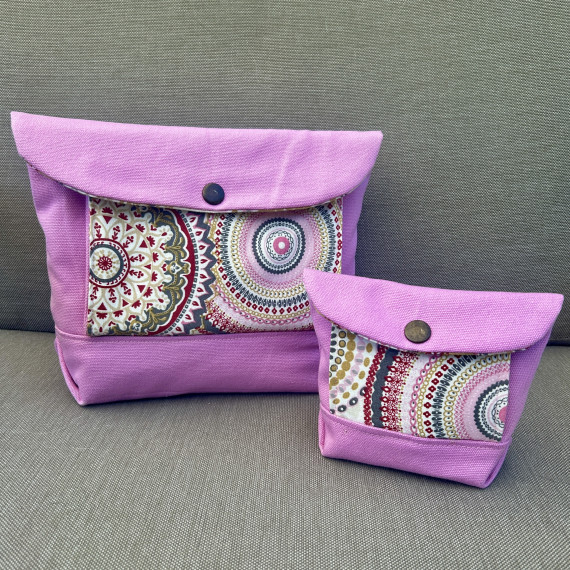 Während die kleine Variante super in die Handtasche passt (14 cm breit, 11 cm hoch, 5 cm tief), ist die große ein idealer Begleiter auf Reisen (26 cm breit, 18 cm hoch, 9 cm tief), da dort in die Ziehharmonikataschen ganze Tablettenblister passen und in die Tasche z. B. der Hustensaft und weitere Medikamente.