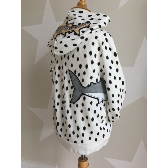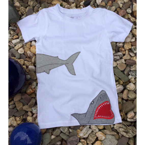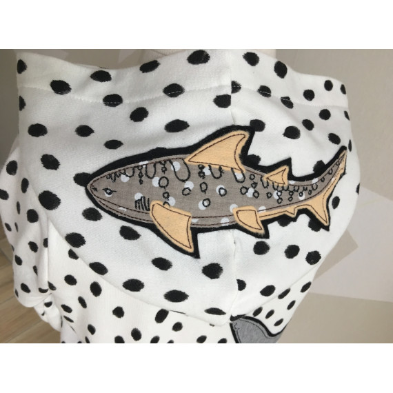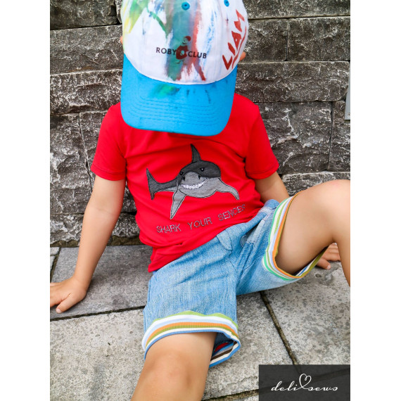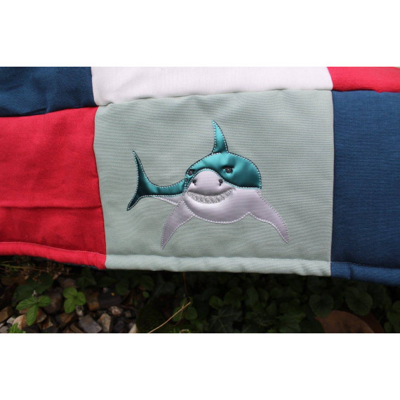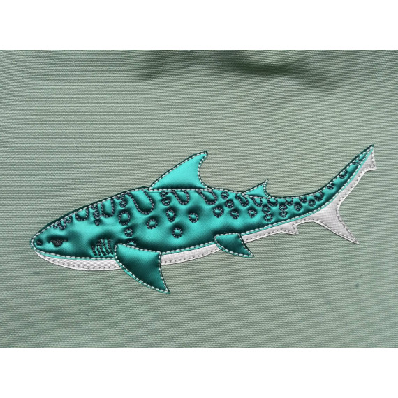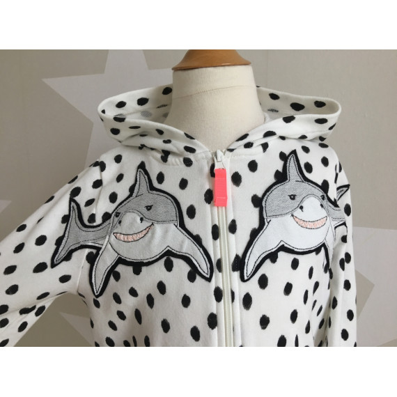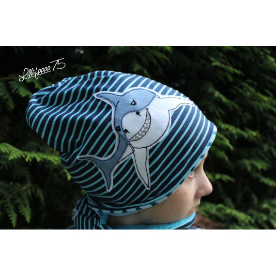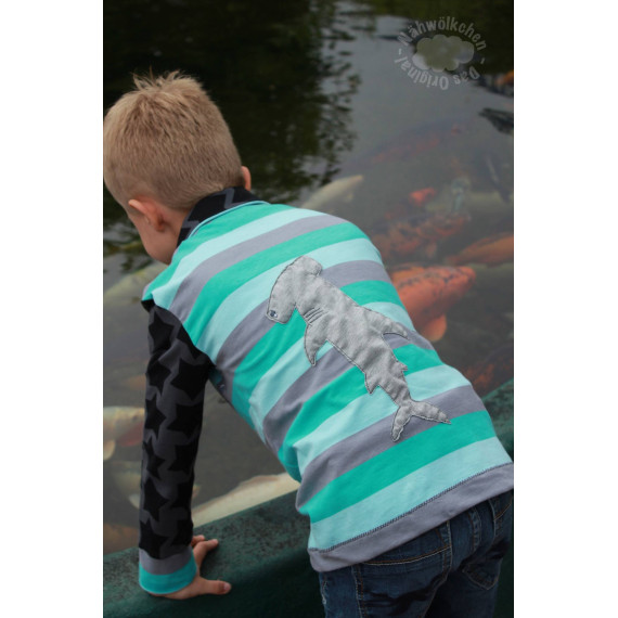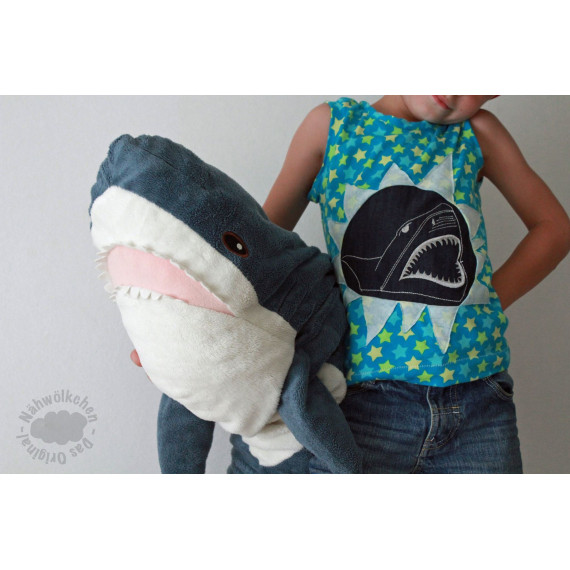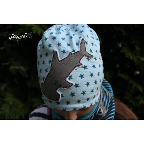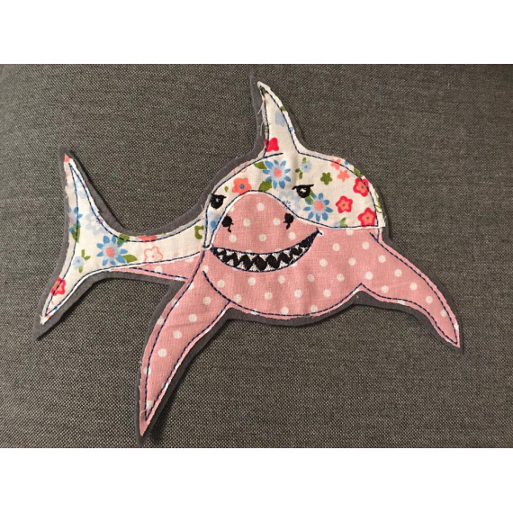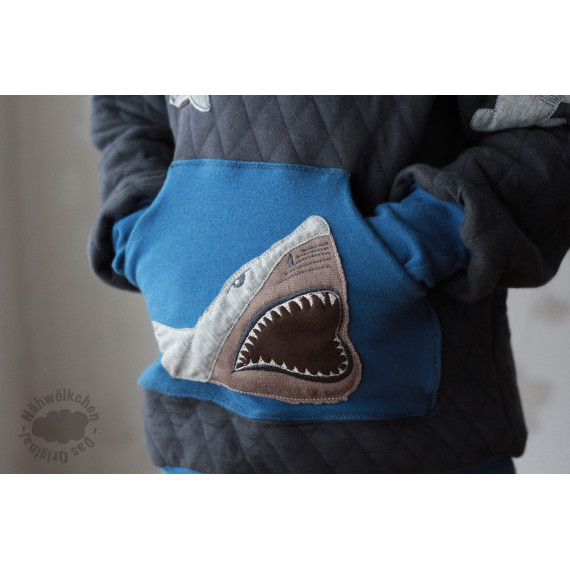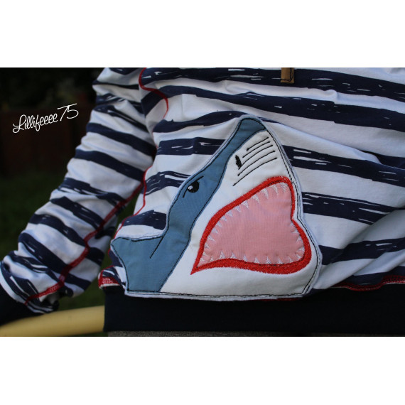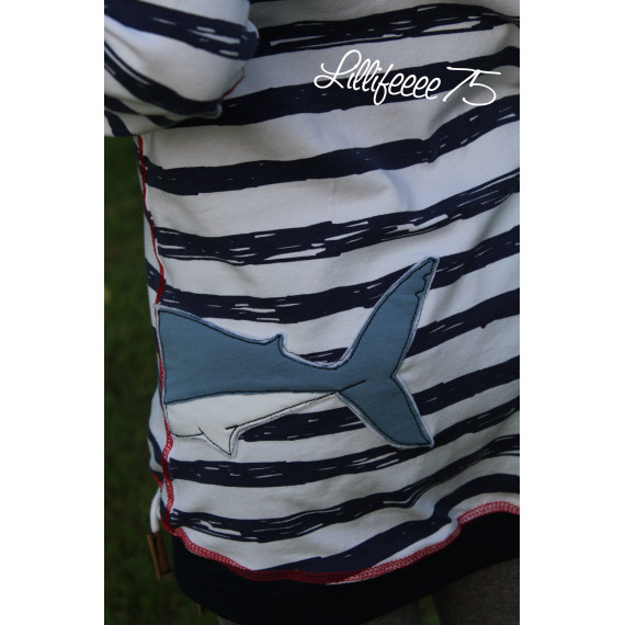 Gezeichnet für meine große Tochter, die die Tiere der Meere und vor allem ihren großen Kuschelhai vom Möbelschweden liebt. Wir lieben Doodleapplikationsdateien, da sie meistens Flott gestickt sind und vor allem, weil man mit ihnen Stoffreste wunderbar aufwerten kann und sie einfach „cool“ sind.