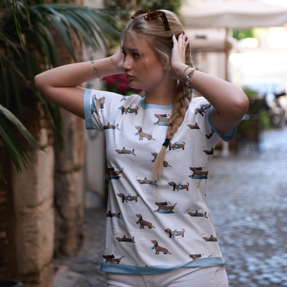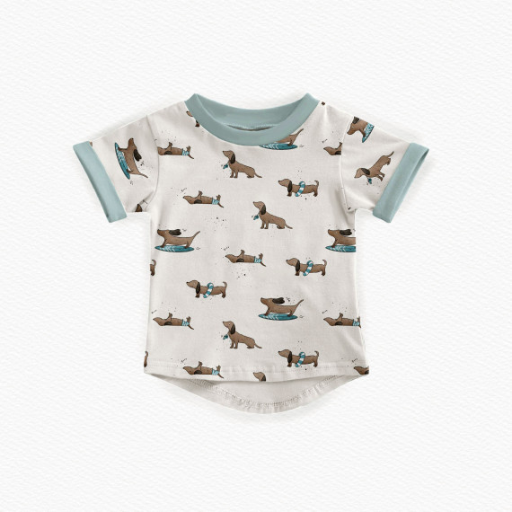 Wundervoller Modal Jersey mit lustigen Dackeln am Strand.