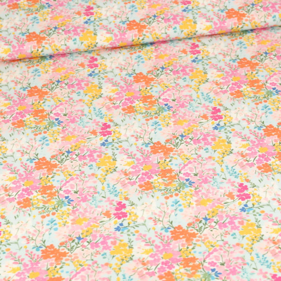 Modal Jersey - Sunkissed Flowers - Pastelltürkis - abby and me