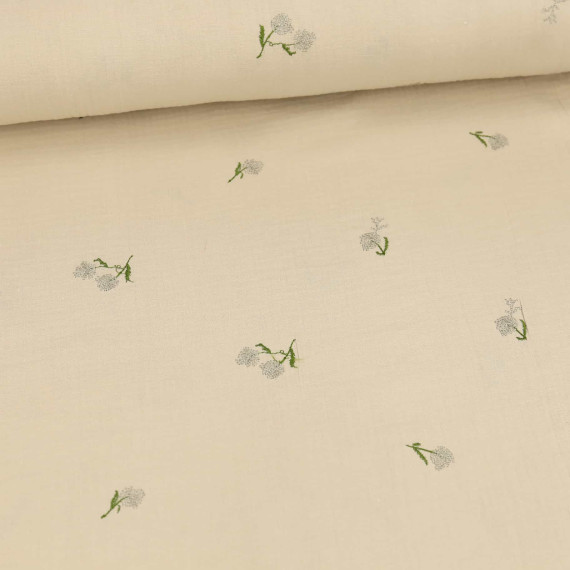 Musselin - Muslin - Double Gauze - Bestickt - Pusteblumen - Beige