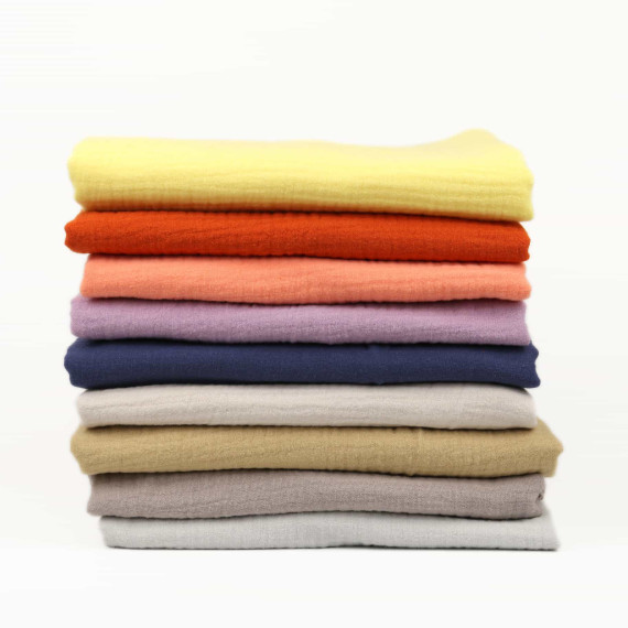 Früher als Windel- oder Schnuffeltuch bekannt, ist der Musselin heute ein angesagter Modestoff! Ob als Halstuch oder leichte Kleidung, ob Batik oder Uni eingefärbt, dieser leichte Stoff mit typisch gewebter Musterung macht einfach Spaß!