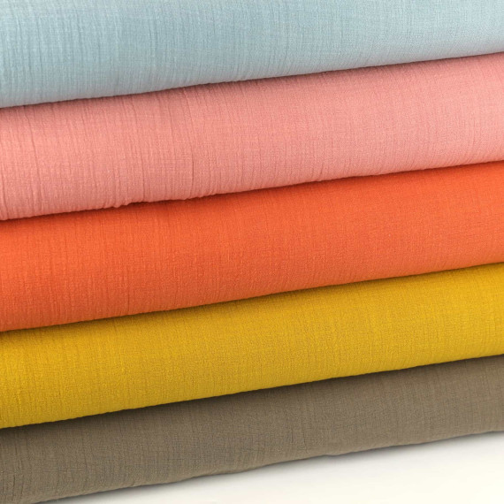 Früher als Windel-oder Schnuffeltuch bekannt, ist der Musselin heute ein angesagter Modestoff! Ob als Halstuch oder leichte Kleidung, ob Batik oder Uni eingefärbt, dieser leichte Stoff mit typisch gewebter Musterung macht einfach Spaß!