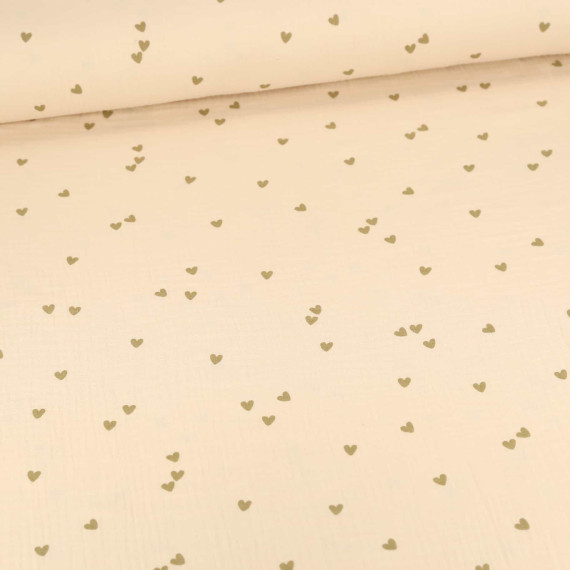 Musselin - Muslin - Double Gauze - Bedruckt - Kleine Herzen - Beige