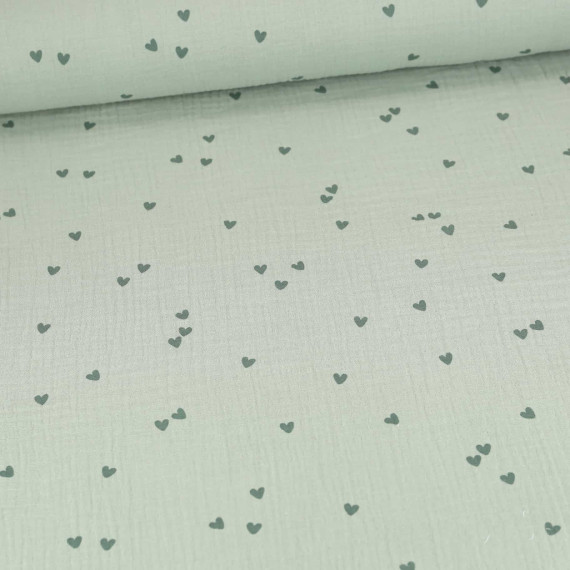 Musselin - Muslin - Double Gauze - Bedruckt - Kleine Herzen - Lichtgrün