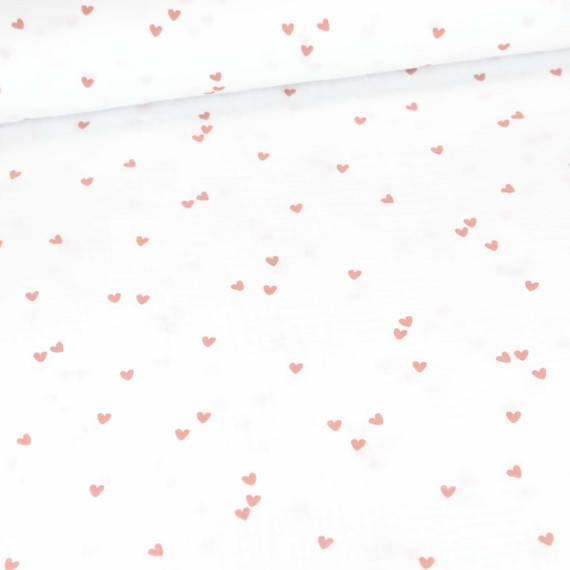 Musselin - Muslin - Double Gauze - Bedruckt - Kleine Herzen - Weiß