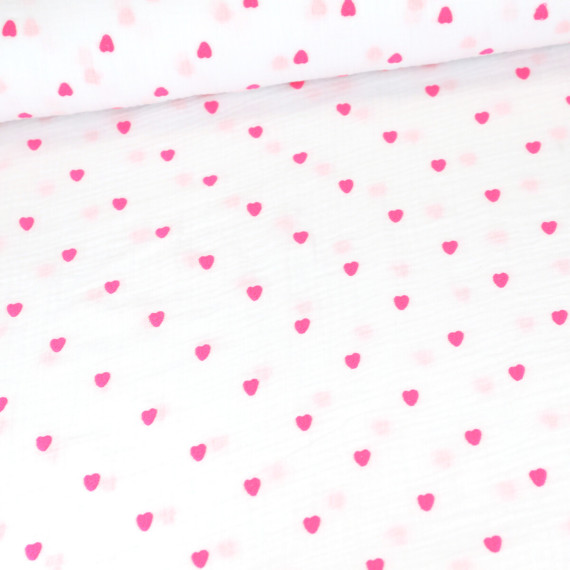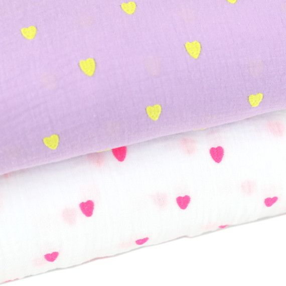 Ein wundervoller, weicher Musselin mit neonpinkfarbenen aufgestickten Herzen! :)