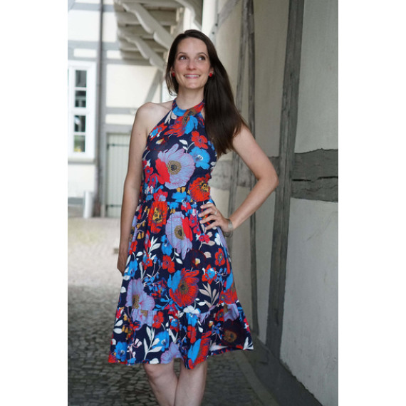 Habt ihr für den Sommer schon ein schickes Neckholderkleid im Schrank? Nein? Dann wird es höchste Zeit, dass ihr EMMY kennenlernt! EMMY begleitet euch vielseitig durch die warme Jahreszeit: Näht euch EMMY als knielanges Kleid mit oder ohne Volant oder verlängert es zum Maxikleid. Wenn ihr geliebte Stoffreste verwerten möchtet, dann könnt ihr euch EMMY auch ganz einfach als Top nähen.