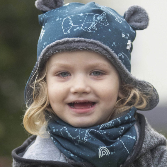Die Ohrenmütze JANNE hat wärmende Ohrenklappen optional in zwei verschiedenen Größen, die vor allem bei kleinen Kindern noch zusätzlich mit einer Kordel geschlossen werden können.