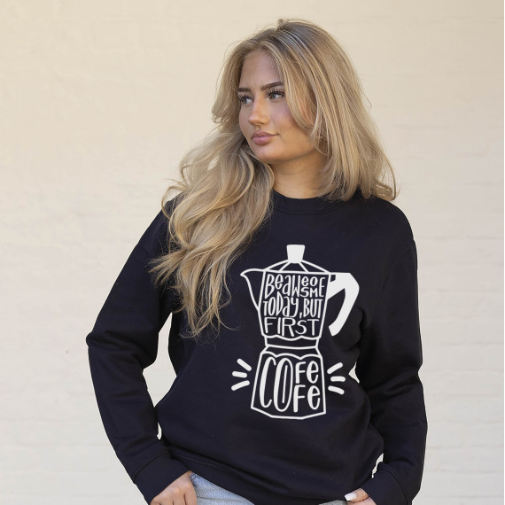 Onkel Bo's Bügelbilder - DIN A4 - Be Awesome Today - But First Coffee - Weiß - Hamburger Liebe