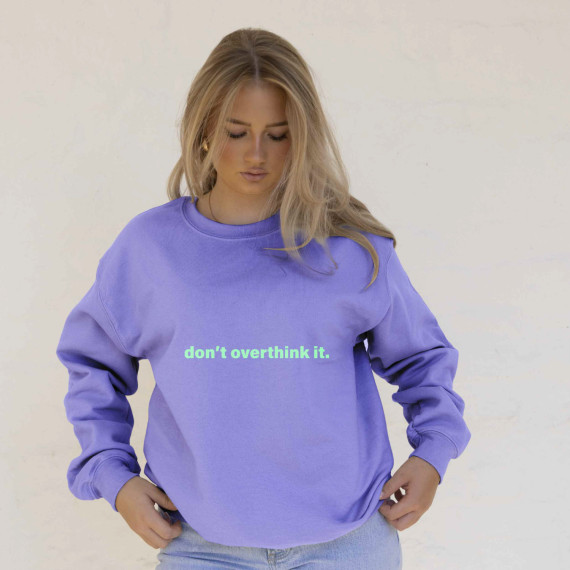 Ein großer Schriftzug "Don't Overthink It" misst ca. 20cm x 1,6cm.