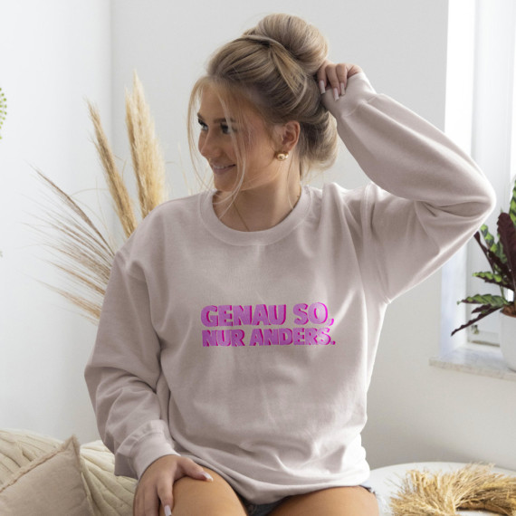 Der größte Schriftzug "Genau so nur anders" misst ca. 20cm x 6,3cm.