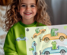 Onkel Bo's Bügelbilder - DIN A4 - fröhliche Tierfreunde - unterwegs - Skateboard - BIG - ela ideen