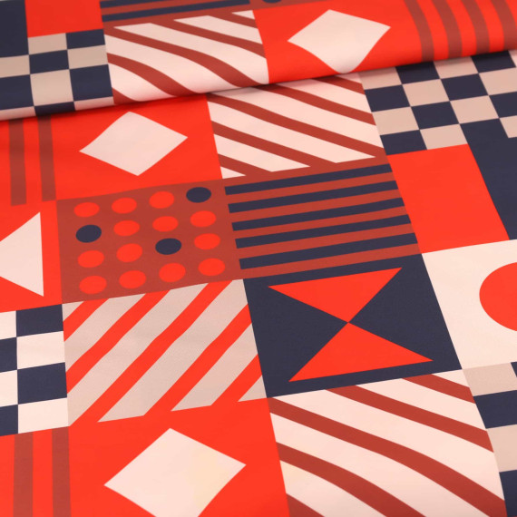 Outdoorstoff - Formenmix - Rot/Stahlblau/Creme - abby and amy