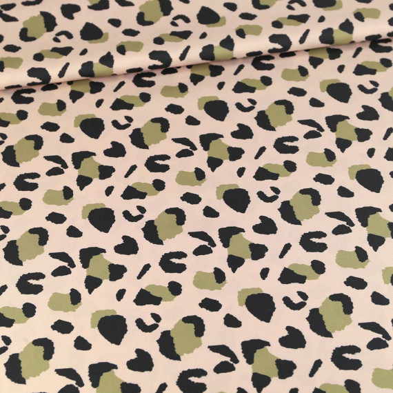 Outdoorstoff - Leo Animal Print - Creme Rose - Schwarz/Olivgrün - abby and amy