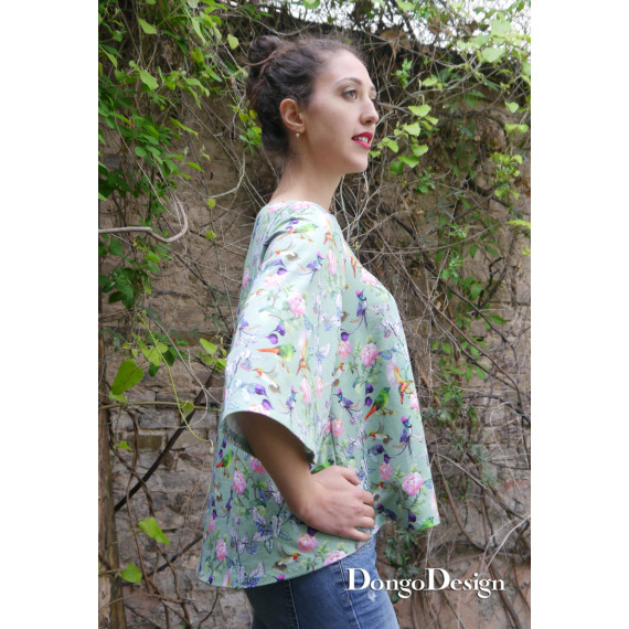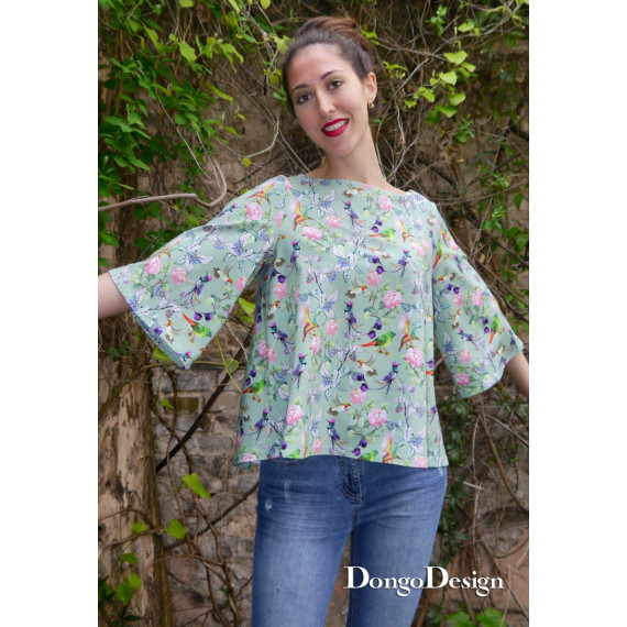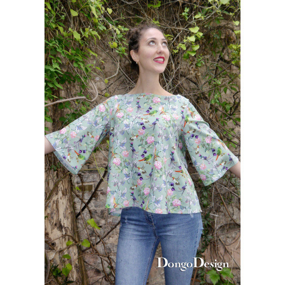 Dieser Schnitt ist sehr einfach und schnell zu nähen. Vor allem wenn man ihn mit der Overlockmaschine näht. Das Schnittmuster Käthe ist für Jersey oder Strickstoffe konzipiert und wirkt klar und puristisch. Das Shirt ist ausgestellt mit ausgestellten Ärmeln und einem leichten Uboot-Kragen. Perfekt für jeden Tag und viele Jerseystoffe.