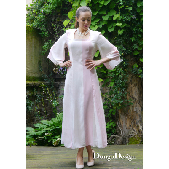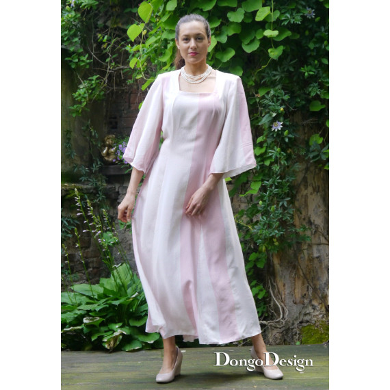 Das Kleider Schnittmuster Jasmin ist für fließende Webstoffe konzipiert ohne Innenfutter. Es wirkt durch die ausgestellte Form besonders Figur freundlich. Die Taillenweite kann zusätzlich mit den Bändern im Rücken korrigiert werden. In meinem Fall habe ich fließenden Seidencrepe genommen. Das Schnittmuster beinhaltet zwei Rocklängen, knieumspielt und lang.Mit einem ausgefallenen Carree-Ausschnitt der ein sehr schönes Décolleté zaubert. Das E-Book als Nähanleitung in deutsch und englisch ist gut zu verstehen und mit Fotos als Hilfe bestückt. Schwierigkeitsgrad leicht bis mittel