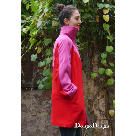 Das Mantel Schnittmuster Komiko ist leger und bequem geschnitten vorne mit einem Zweiwege Reißverschluss zu schließen, oder aber auch lässig offen zu tragen. Komplett gefüttert mit Taschen in den Seitennähten und einer Teilung bis in die Ärmel hinein die das ungwöhnliche Design hervorhebt. Der hohe überschnitten Kragen hält schön warm.