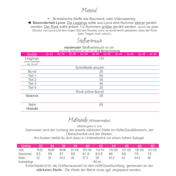 Enthalten sind außerdem Zuschnittmaße & eine Nähanleitung für Stulpen.
