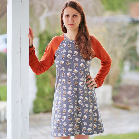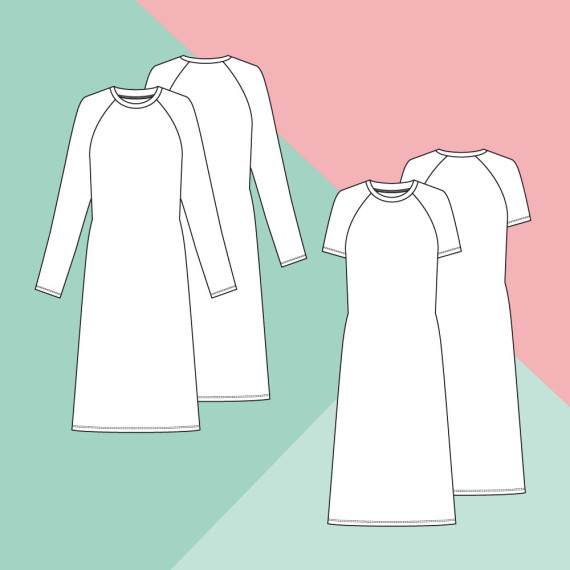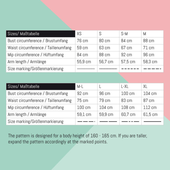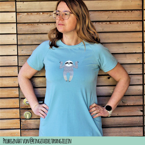 The pattern for the Gerti nightgown is long-sleeved, slightly fitted and ensures a pleasant, cozy sleep, especially in the cold season. Thanks to the markings on the sleeve and on the front and back, it can be lengthened or shortened as desired. So it can also be sewn with short sleeves for the warmer season. The comfortable night dress with raglan sleeves reaches almost to the knee and is loosely cut and quickly sewn. The nightdress is available in sizes XS-XL.
