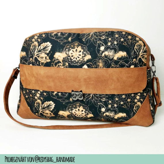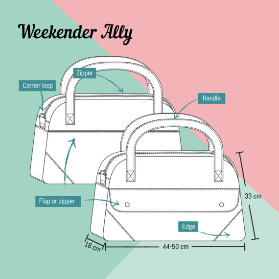 The large weekender Ally is ideal for small weekend trips or as a large diaper bag. The bag has a total of 4 outside pockets. Depending on your preference, you can sew the front and back with a zipper or a flap. Small things fit in on the sides. In addition to the large main compartment, the Ally also has two inside pockets. You can sew these with a zipper and/or a pocket. The weekender has dimensions of approx. (W) 44 – 50 x (H) 33 x (D) 16 cm. If you need a smaller bag for everyday use, the little sister handbag Ally is ideal.