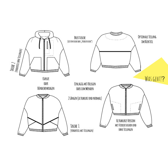 Mehrere Taschenvarianten und Details, 2 verschiedene Längen (normal und ultrakurz) sowie eine Kapuze lassen, lassen keine Wünsche offen!
