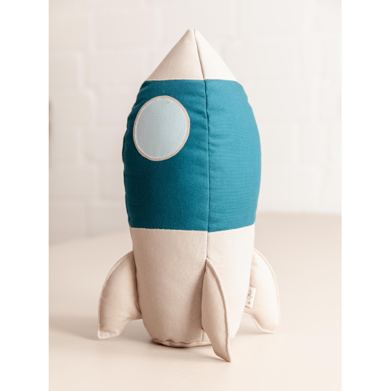 Die Details der Rakete kannst du wunderbar mit Applikationen umsetzen. Du kannst deiner Kreativität freien Lauf lassen, indem du gestickte Bügelaufnäher, nachtleuchtendes Garn oder sogar leuchtende Farbe verwendest. Die Rakete kann dank ihrer stabilen Konstruktion eigenständig stehen – das war mir besonders wichtig, denn so kann sie nicht nur zum Spielen, sondern auch als dekoratives Kissen verwendet werden.