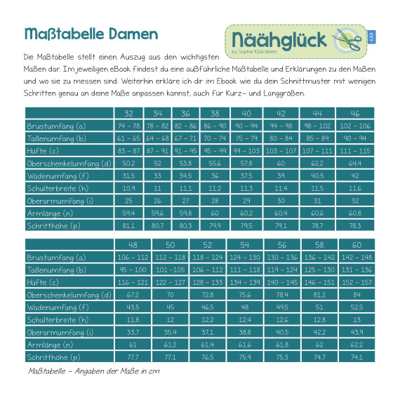 - Schnittmusterbogen im *.pdf-Format in A4 mit Ebenen - Größen 48 - 60