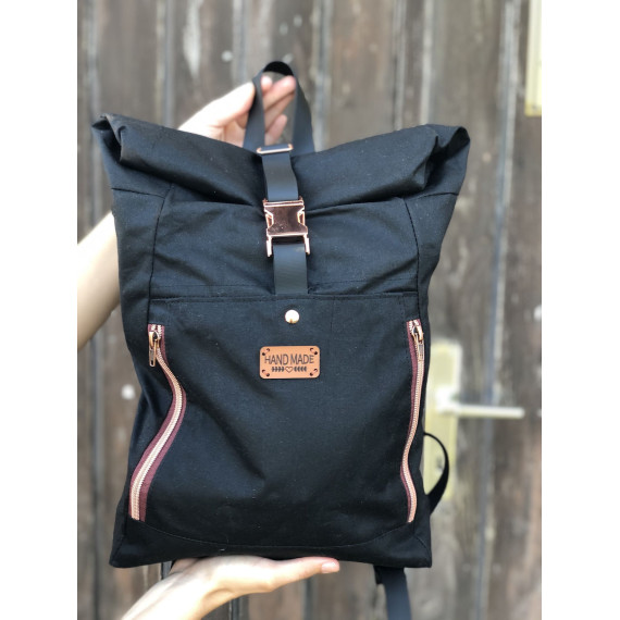 Das obere Ende wird eingerollt, so ist der Inhalt des Rucksacks gut geschützt.