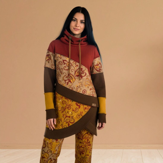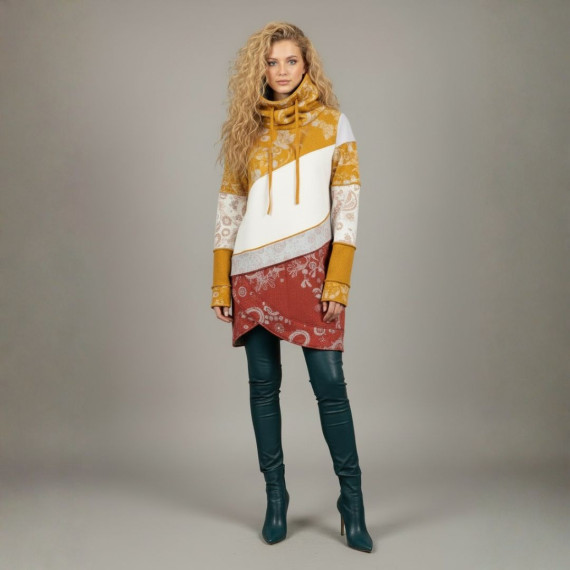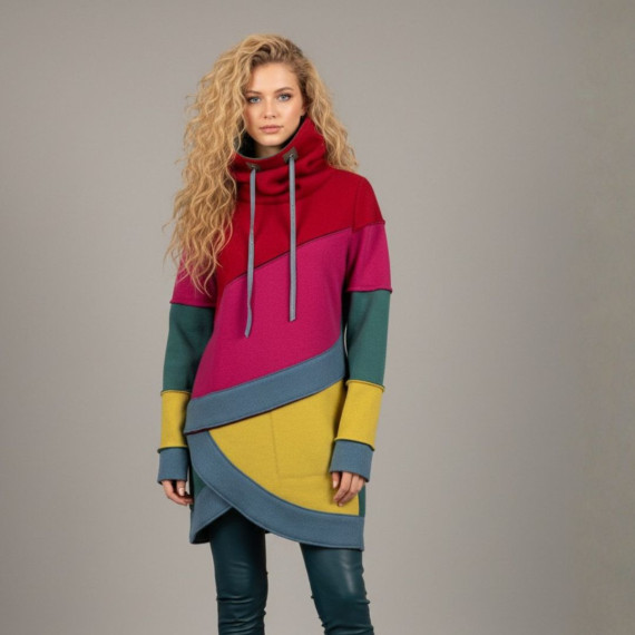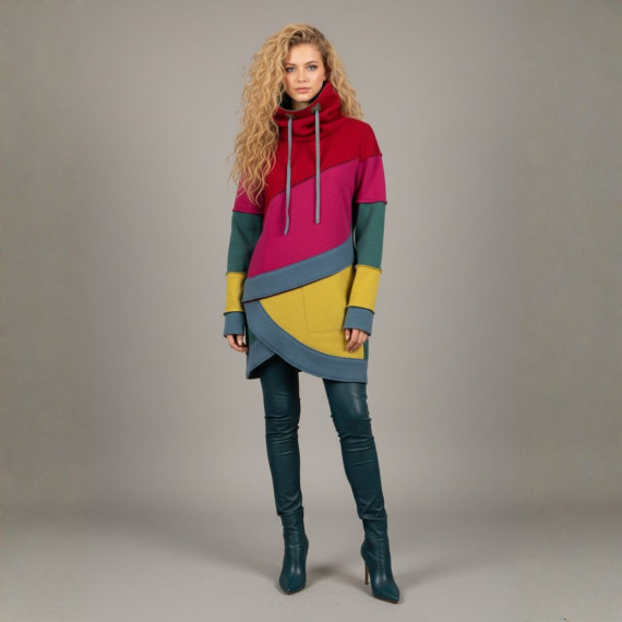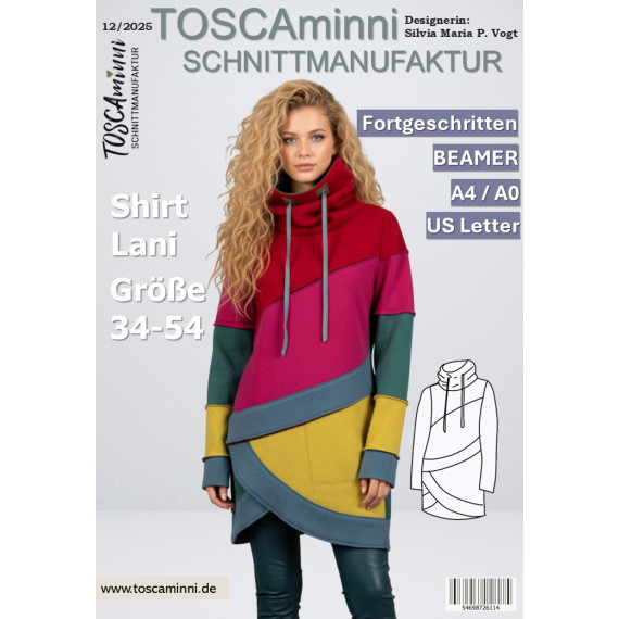Mit dem Shirt Lani Schnittmuster nähst du dir im Handumdrehen einen stylischen Pullover mit Stehkragen, der aussieht wie aufwendig gelayert – aber dank cleverem Schnitt super schnell genäht ist. Lani ist ideal für Frauen von 20 bis 70, die wenig Zeit haben, aber Wert auf moderne, besondere Designs legen. Der Schnitt ist speziell dafür gedacht, deine Stoffreste in Szene zu setzen: asymmetrische Vorderteile, Blenden im „Used-Look“ und optionale Patchwork-Ärmel machen jedes Teil zu einem Unikat.