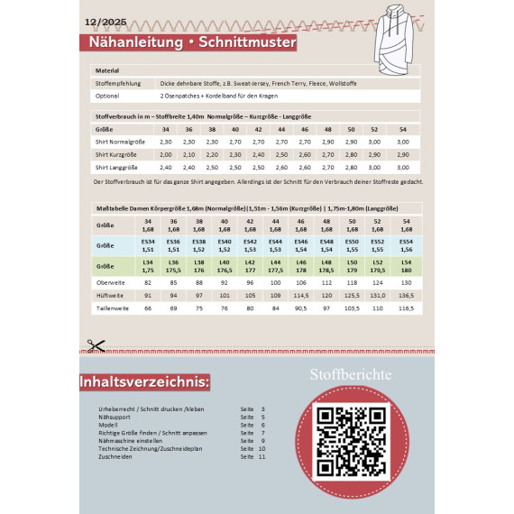 Maßtabelle und Angaben zum Stoffverbraucht findest du in den Artikelbildern.