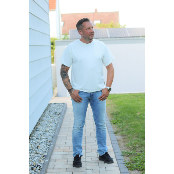 JELSI MEN ist ein klassisches T-Shirt mit kurzem Ärmel für Männer in den Größen 44 bis 64. Der Schnitt ist schlicht, gerade und auf eine einheitliche Länge ausgelegt – perfekt für den Alltag und vielseitig kombinierbar.