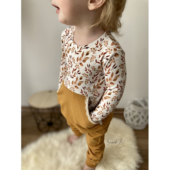 - Geeignete Stoffe: Jersey + Bündchenware bzw. Gummiband