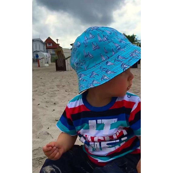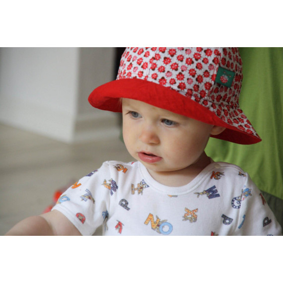 Der Sonnenhut ist gefüttert und kann somit von beiden Seiten getragen werden (Wendehut).